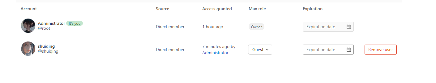 | Guest:可以创建issue,发表评论,不能读写版本库 Reporter:可以克隆代码,不能提交,QA、PM可以赋予这个权限 Developer:可以克隆代码,开发,提交,push,普通开发可以授予该权限 Maintainer:可以创建项目,添加tag,保护分支,添加项目成员,编辑项目,核心开发可以授予该权限 Owner:可以设置值项目访问权限,Visibility Level,删除项目,迁移项目,管理组成员,开发组组长可以授予该权限